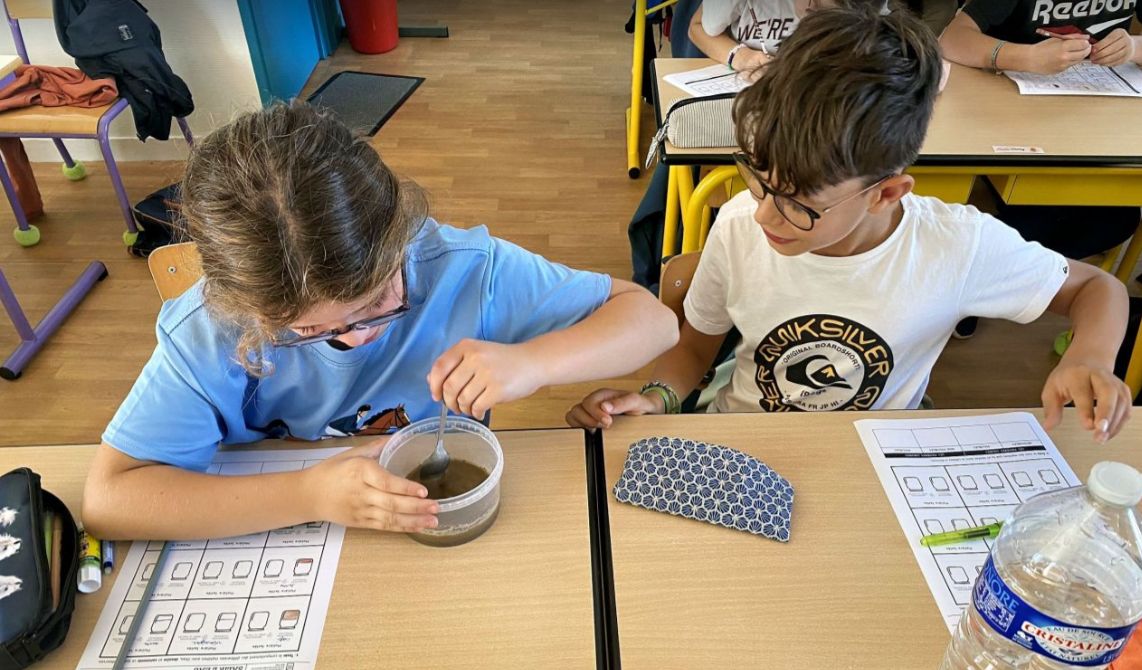 Pour cette première séquence en sciences avec les CM, nous travaillons sur l’eau. Cette semaine, nous avons fait des expériences en mélangeant différentes matières solides ou liquides à l’eau afin de comprendre la différence entre les notions de soluble/insoluble et de miscible/non miscible.