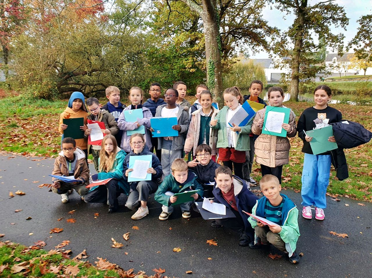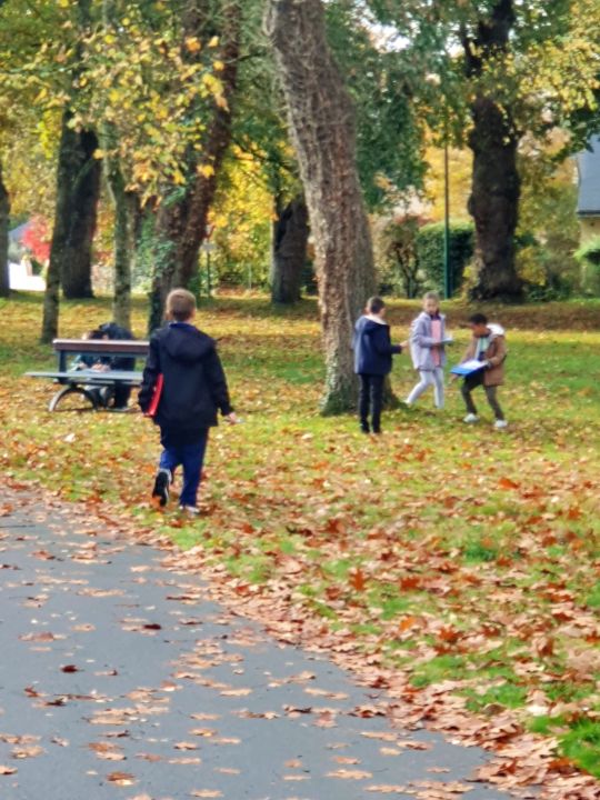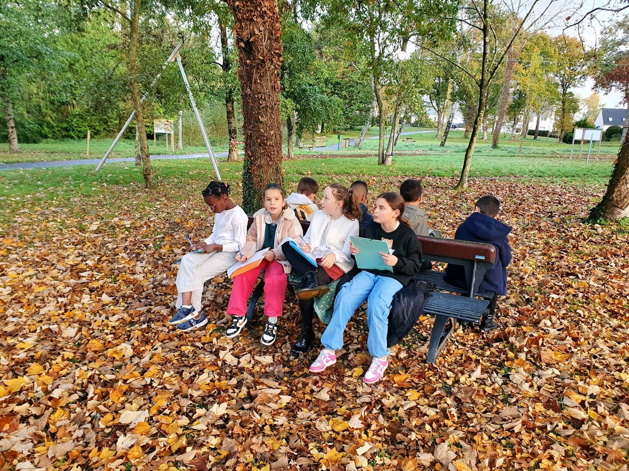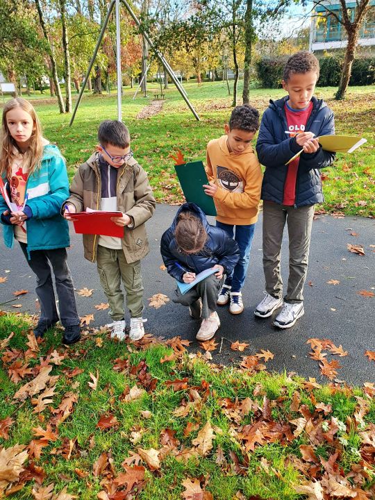 Ce vendredi matin, les élèves de CE2-CM1 sont allés faire leur séance de français dans le parc du Clos Havard. Dans une douce lumière automnale, en écoutant et en observant la nature qui les entourait, chacun d'entre eux a pu écrire et classer un grand nombre de mots, qui leur serviront à enrichir leur vocabulaire et écrire de jolis textes sur le thème de la nature.