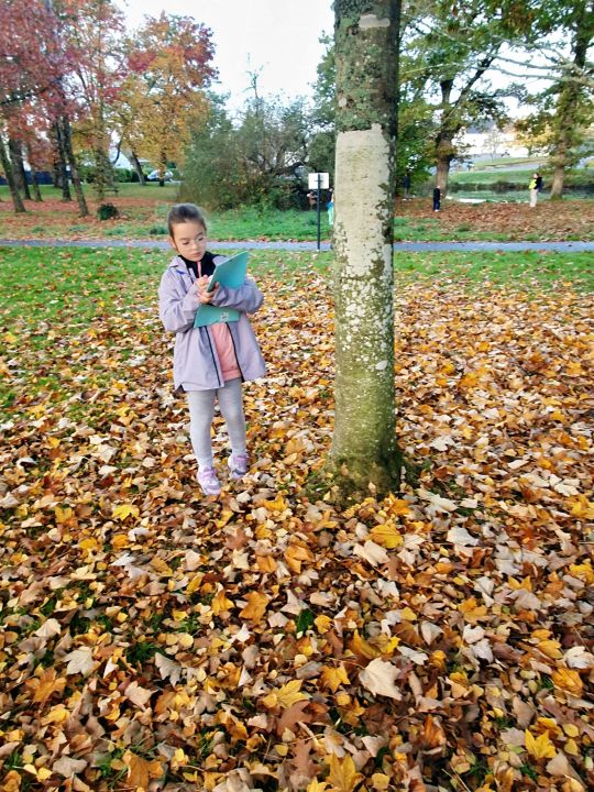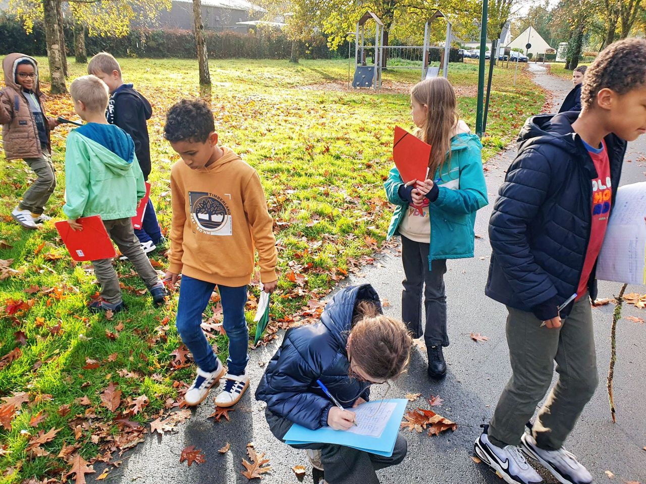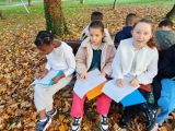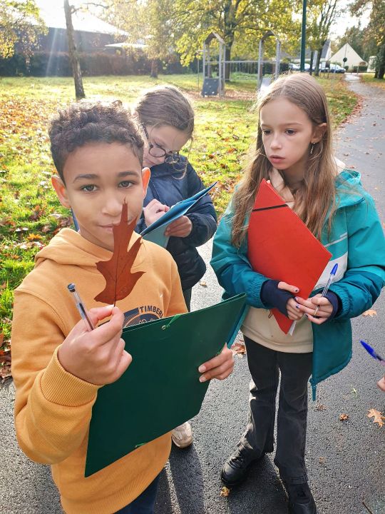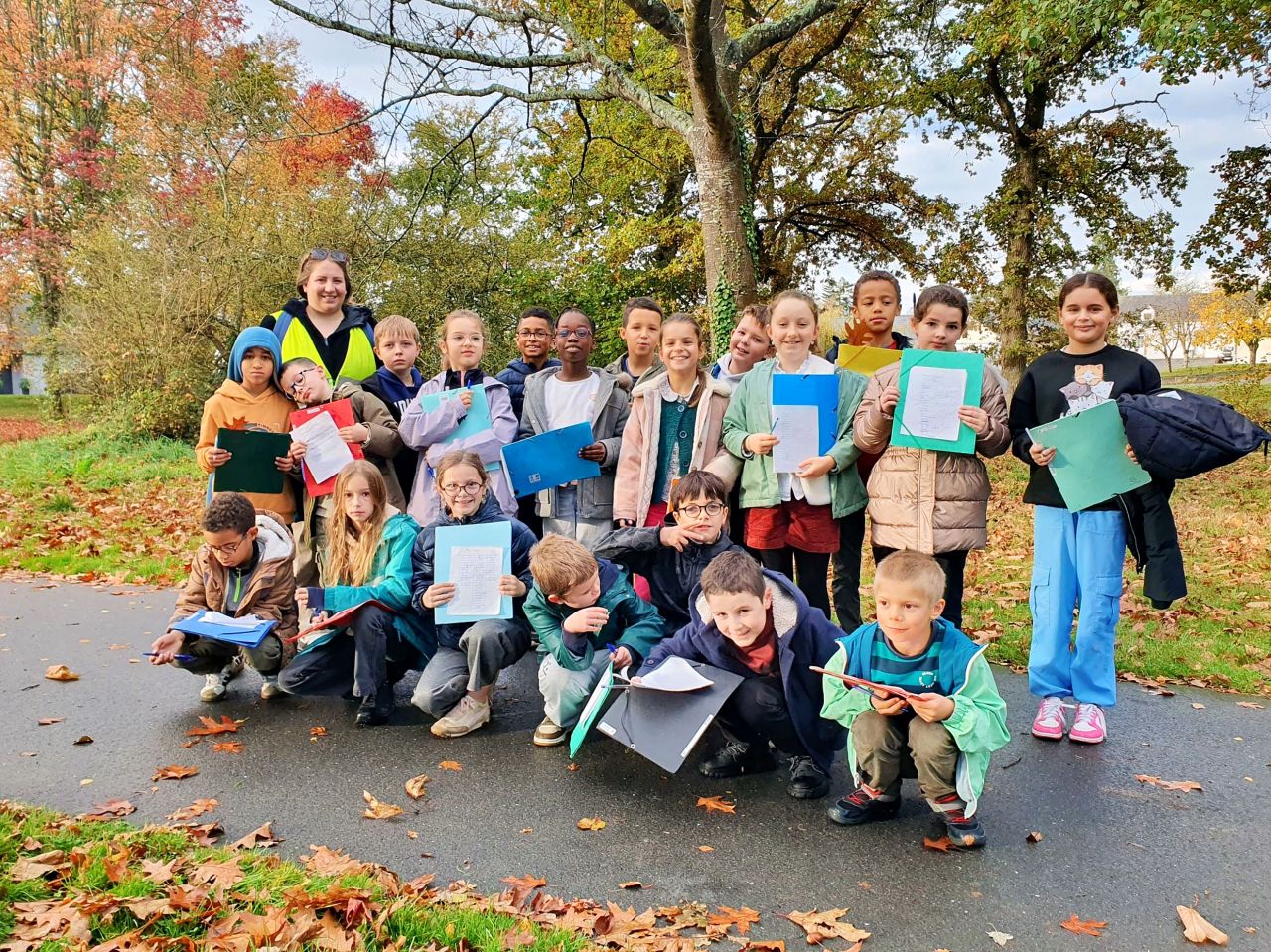 Ce vendredi matin, les élèves de CE2-CM1 sont allés faire leur séance de français dans le parc du Clos Havard. Dans une douce lumière automnale, en écoutant et en observant la nature qui les entourait, chacun d'entre eux a pu écrire et classer un grand nombre de mots, qui leur serviront à enrichir leur vocabulaire et écrire de jolis textes sur le thème de la nature.